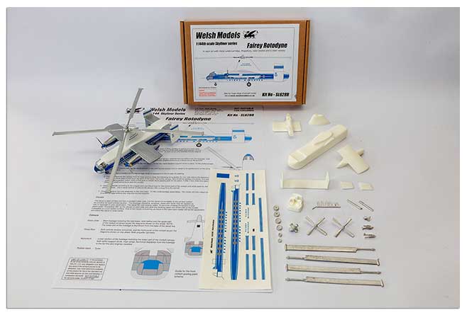 SL628R - Fairey Rotodyne. A resin kit with clear perspex canopy, white metal rota blades, rota head, propellers, undercarriage flaps, undercarridge and rear tailfin supports. Decals by Welsh.